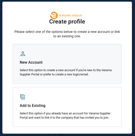 - Add to Existing: Select this option if you already have an account in Ework Verama.
