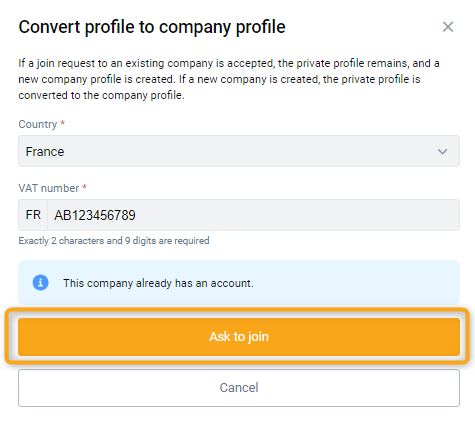 A notification is sent to the Admin of the Company you request to join, when the admin has approved your request to join you will become a member of the company.