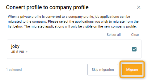 You will now be asked if active applications should be migrated to the company you have requested to join.